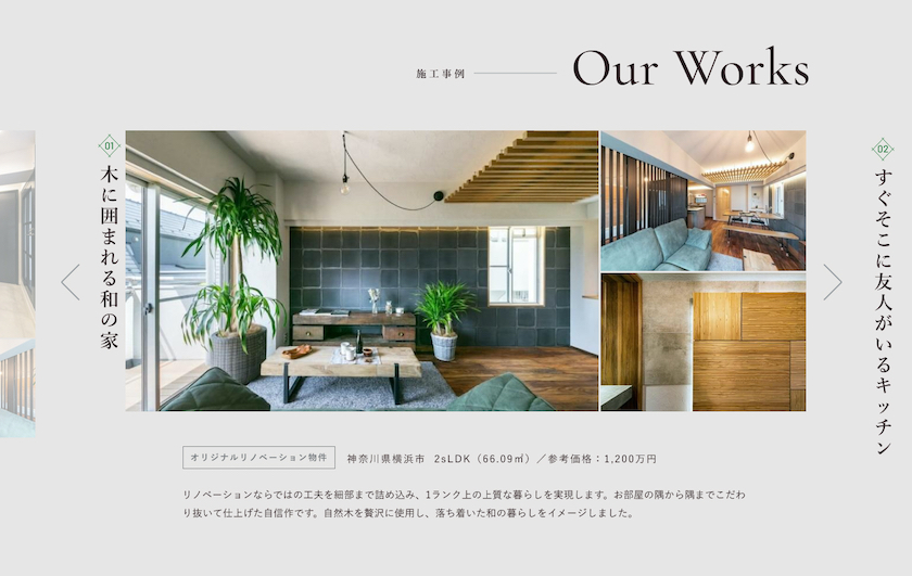 事業の特徴は、不動産購入とリノベーションを一貫して行う「ワンストップ・サービス」。