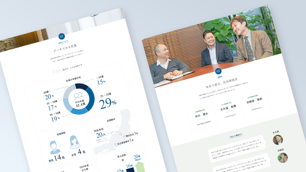 募集要項のみではなく、会社や社員の魅力を発信する構成にしております。