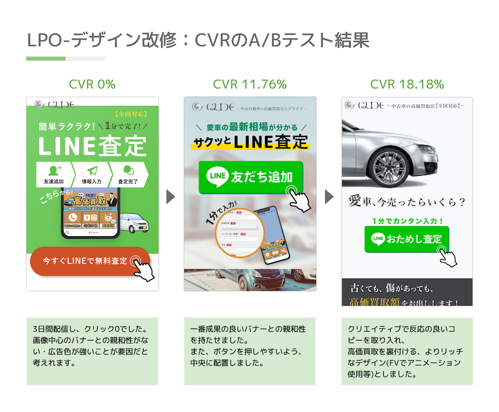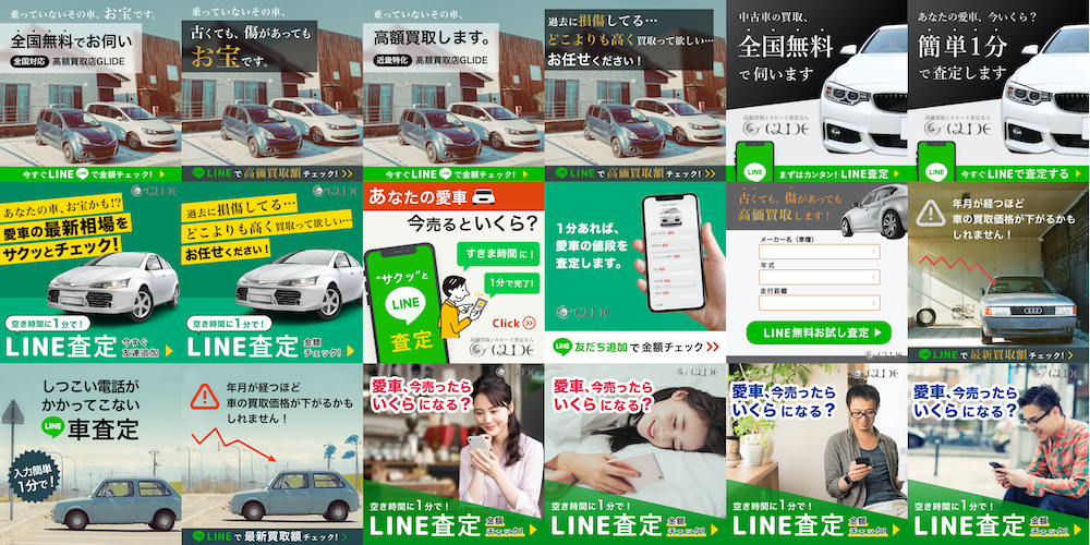 中古車買取を行うGLIDE様より、公式LINE登録をCVとした広告運用を依頼されました。