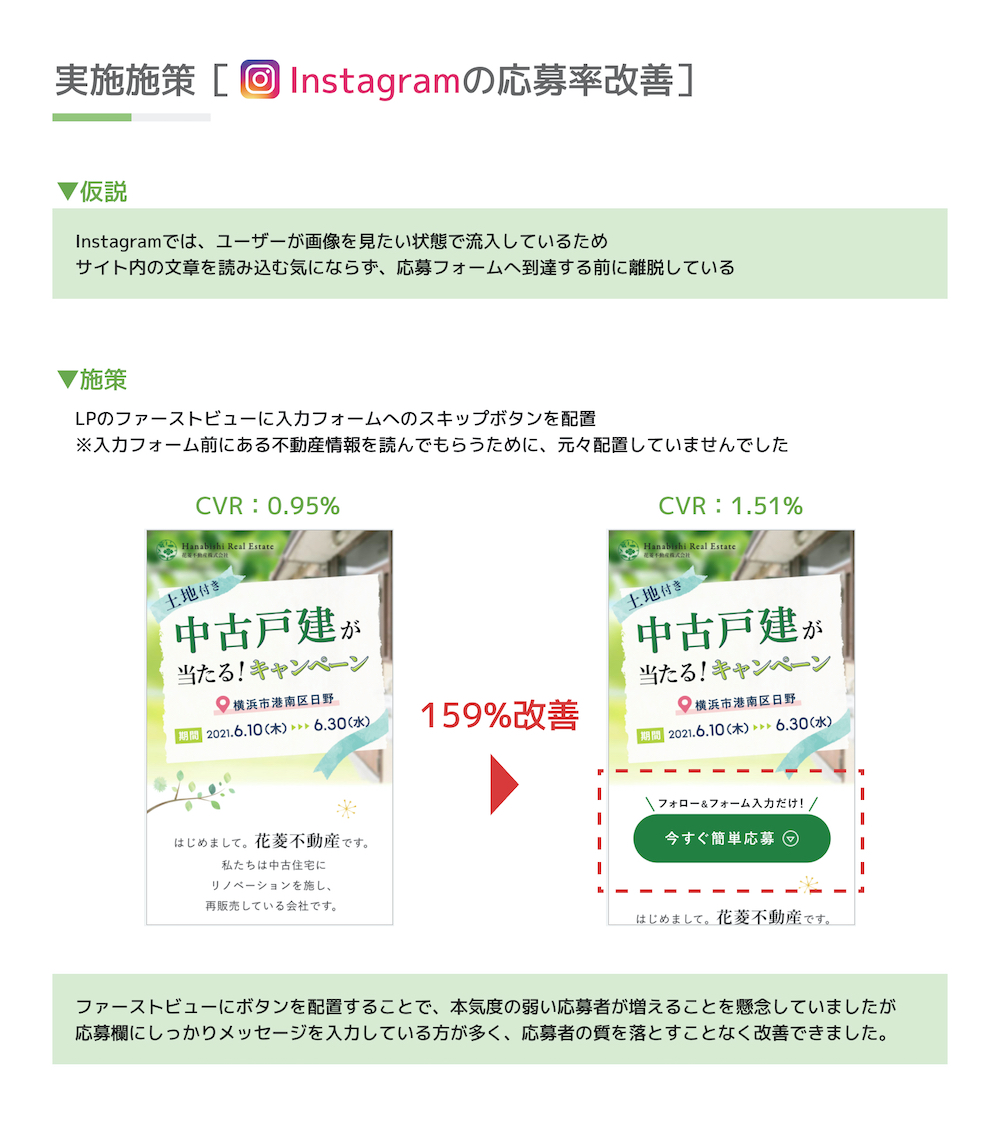 対策として、「応募はこちら」を「簡単!誰でも30秒で応募」と手軽さを強調したタイトルに変更しました。