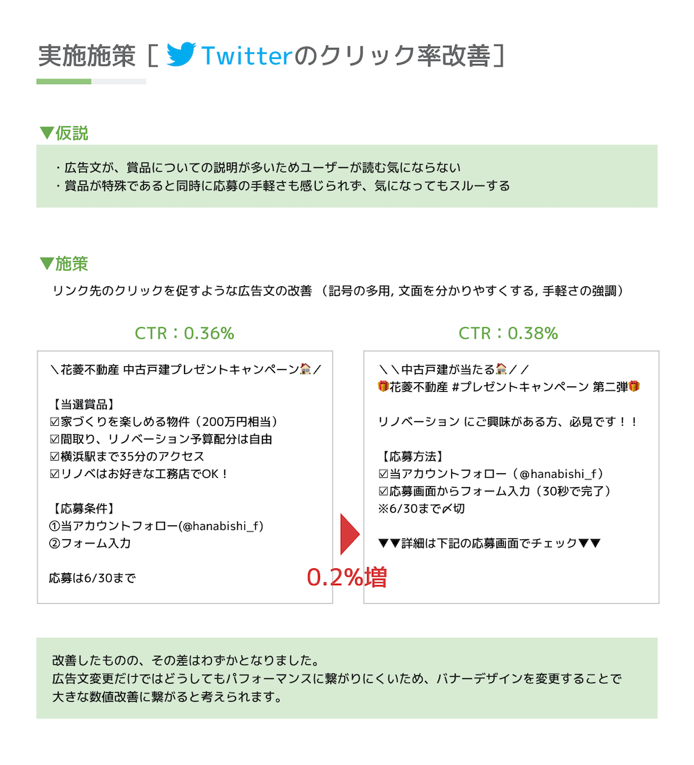 今後に活かしたい反省点として、キャンペーン期間が20日間ほどと短いため、LPに追加コンテンツを入れる等の大幅な改善ができなかった点があります。